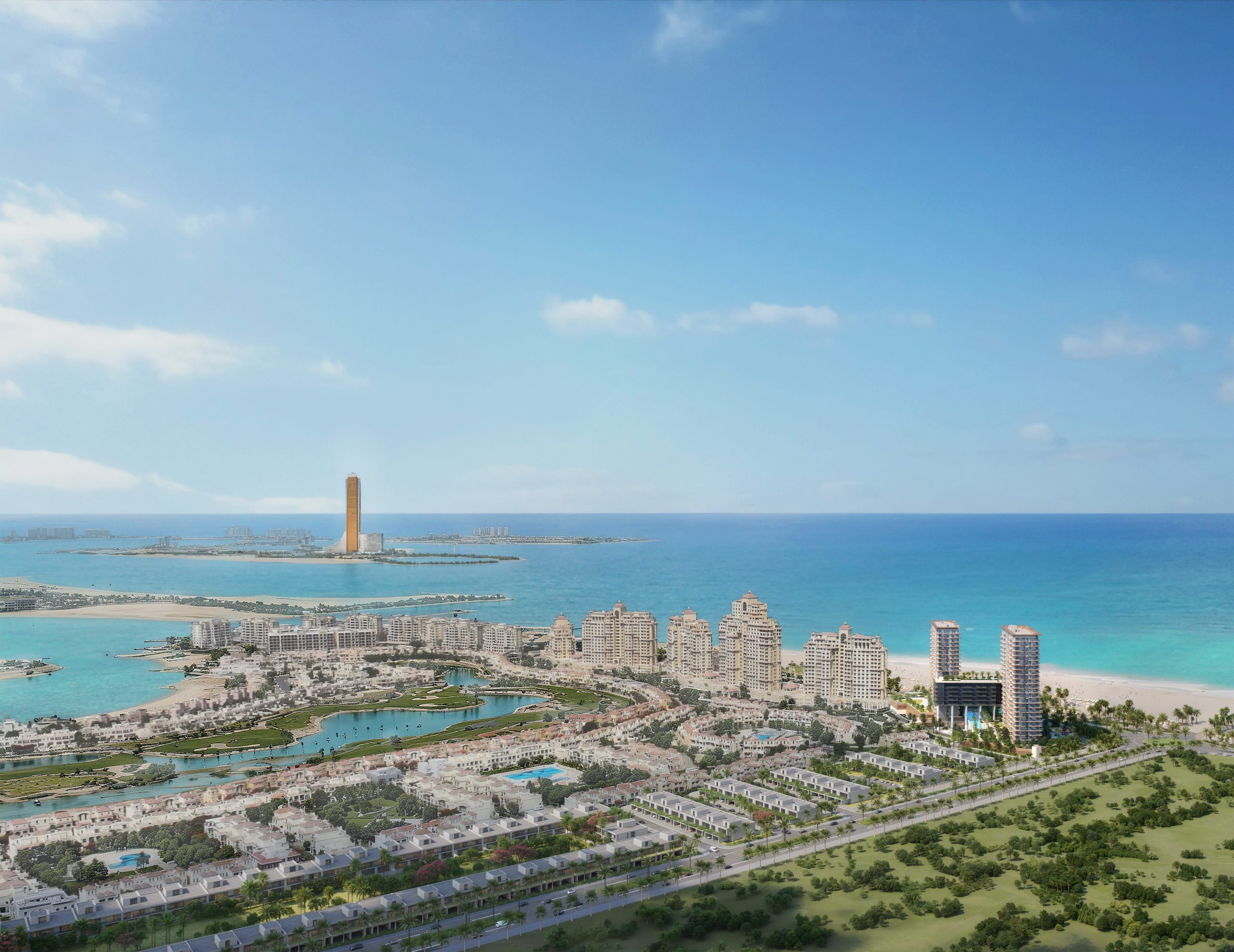 The development offers a diverse collection of residences, ranging from well-appointed studios to expansive penthouses, each crafted with contemporary layouts, refined detailing, and premium finishes. Floor-to-ceiling windows and generous balconies frame breathtaking views of the Arabian Gulf, the serene Al Hamra Lagoon, and the lush fairways of the surrounding golf course, creating a daily connection to nature and light.